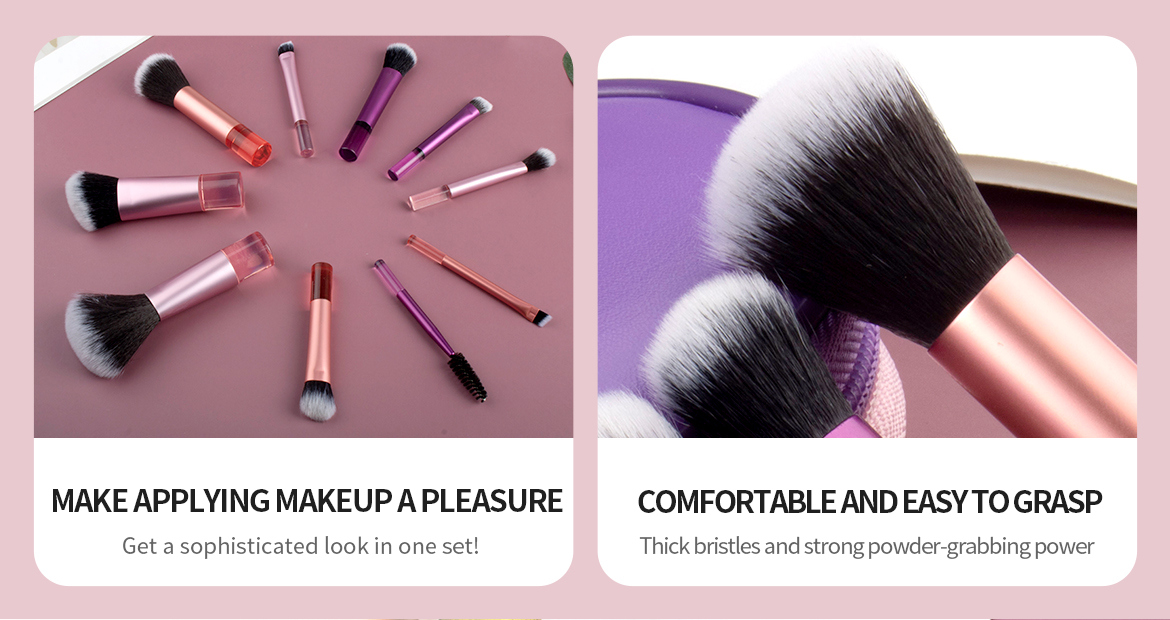 Professional makeup starts with a set of top-quality makeup brushes. Our brush sets feature carefully selected, high-quality synthetic fibers, with each bristle rigorously screened and processed. They are soft and delicate yet durable, offering excellent powder pickup and ensuring even and natural application. Customization options are available.