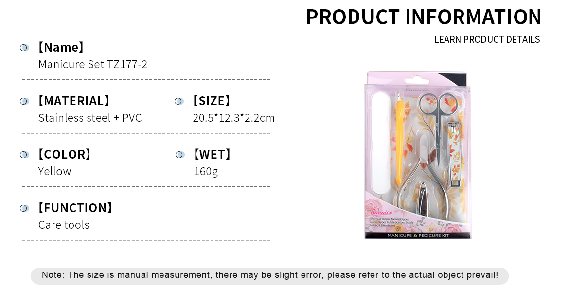 1.Material Tools: Carbon steel, stainess stee Manicure set cast: Different texture materials(pu,plastic,cloth,aluminium box, etc.) |