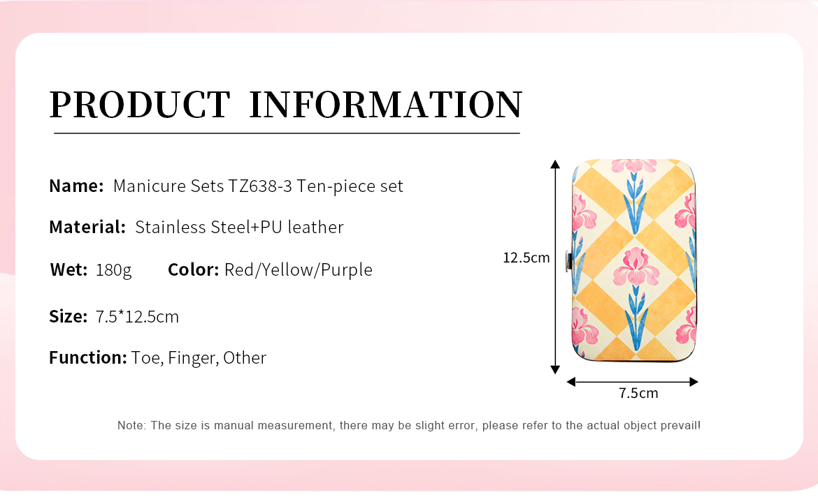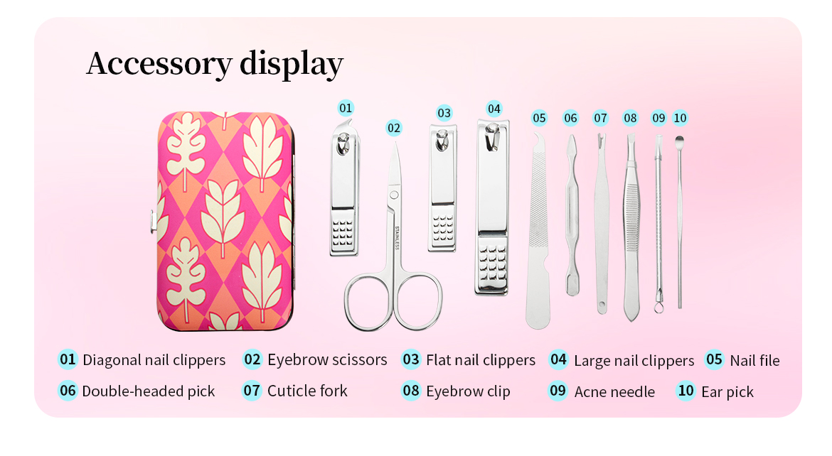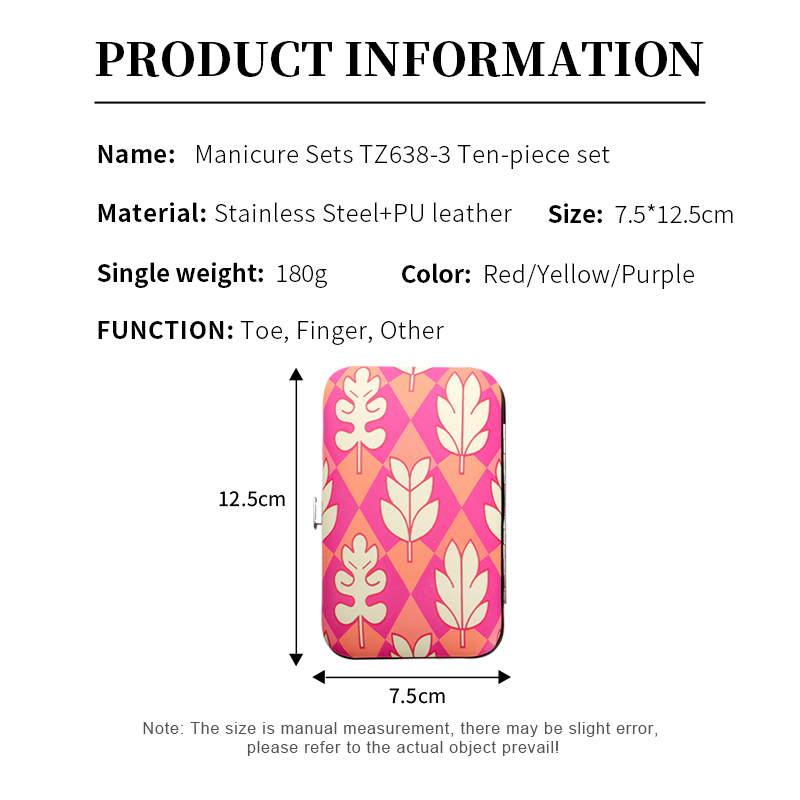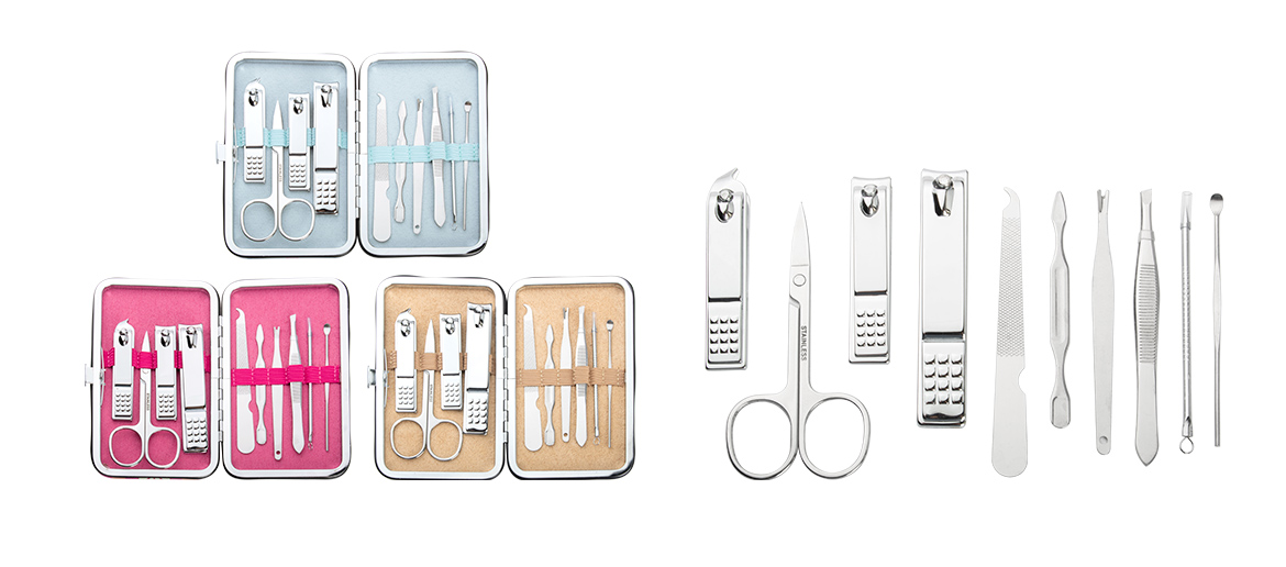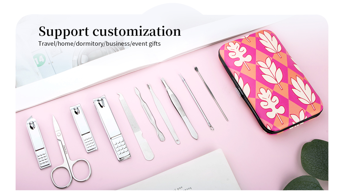 | 1.Material Tools: Carbon steel, stainess stee Manicure set cast: Different texture materials(pu,plastic,cloth,aluminium box, etc.) |